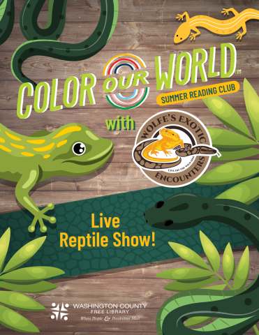 Do you love reptiles and other animals? Come meet some new scaly friends at this live animal show. All ages welcome. This is a Summer Reading Club event.