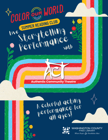 Let's get colorful with Authentic Community Theater! This live performance storytime is a great way to get excited about Summer Reading Club. Open to kids and parents of all ages. No registration necessary. This event takes place off-site at Taylor Park Pavilion: N Main St, Keedysville, MD 21756
